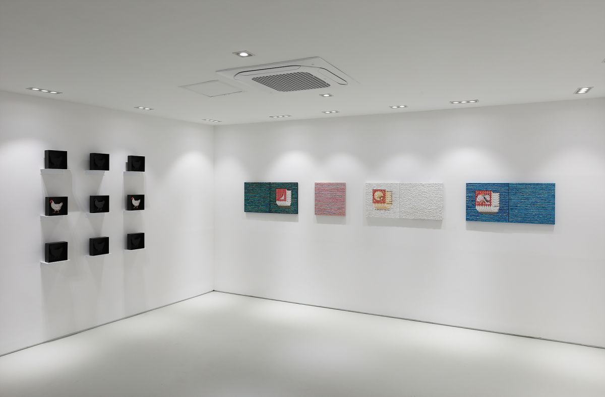 OMAE Gallery is pleased to present a solo exhibition by an artist who blurs the boundaries between traditional Eastern and Western approaches to landscape painting. Rooted in the aesthetics of Korean sansuhwa (landscape painting), the artist reinterprets this classical form through Western materials and contemporary methods, using overlapping depictions of animals and dispersed perspective techniques. At first glance, the paintings may appear as serene mountain landscapes ablaze with autumn foliage, mist, and granite ridges—but upon closer inspection, the viewer discovers a densely packed mass of chickens, their red combs and brown tails transforming into mountain ridgelines and fog. This ironic layering invites a deeper reflection on mass consumption, visibility, and value.
