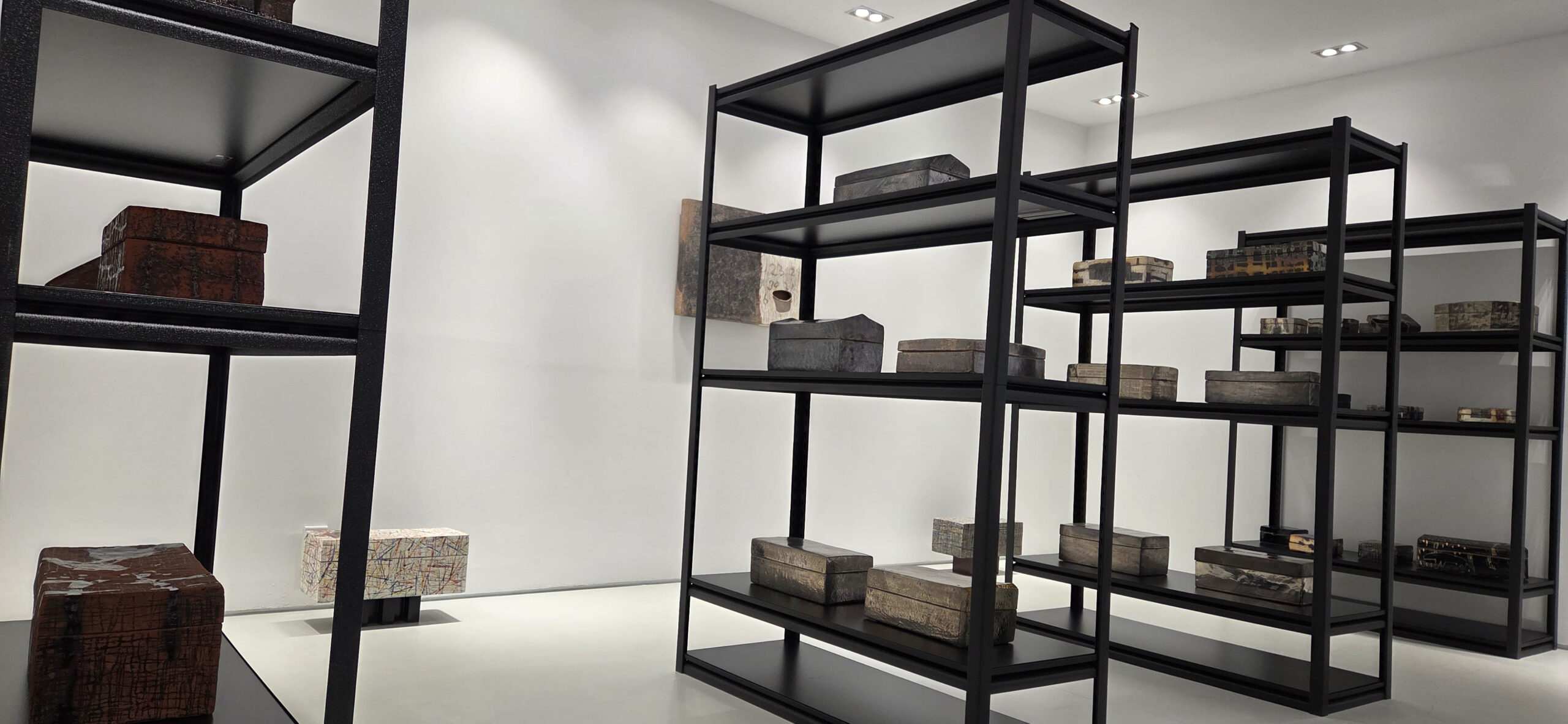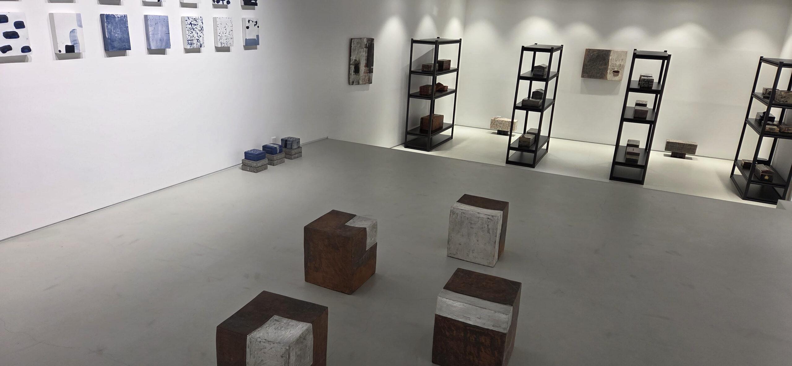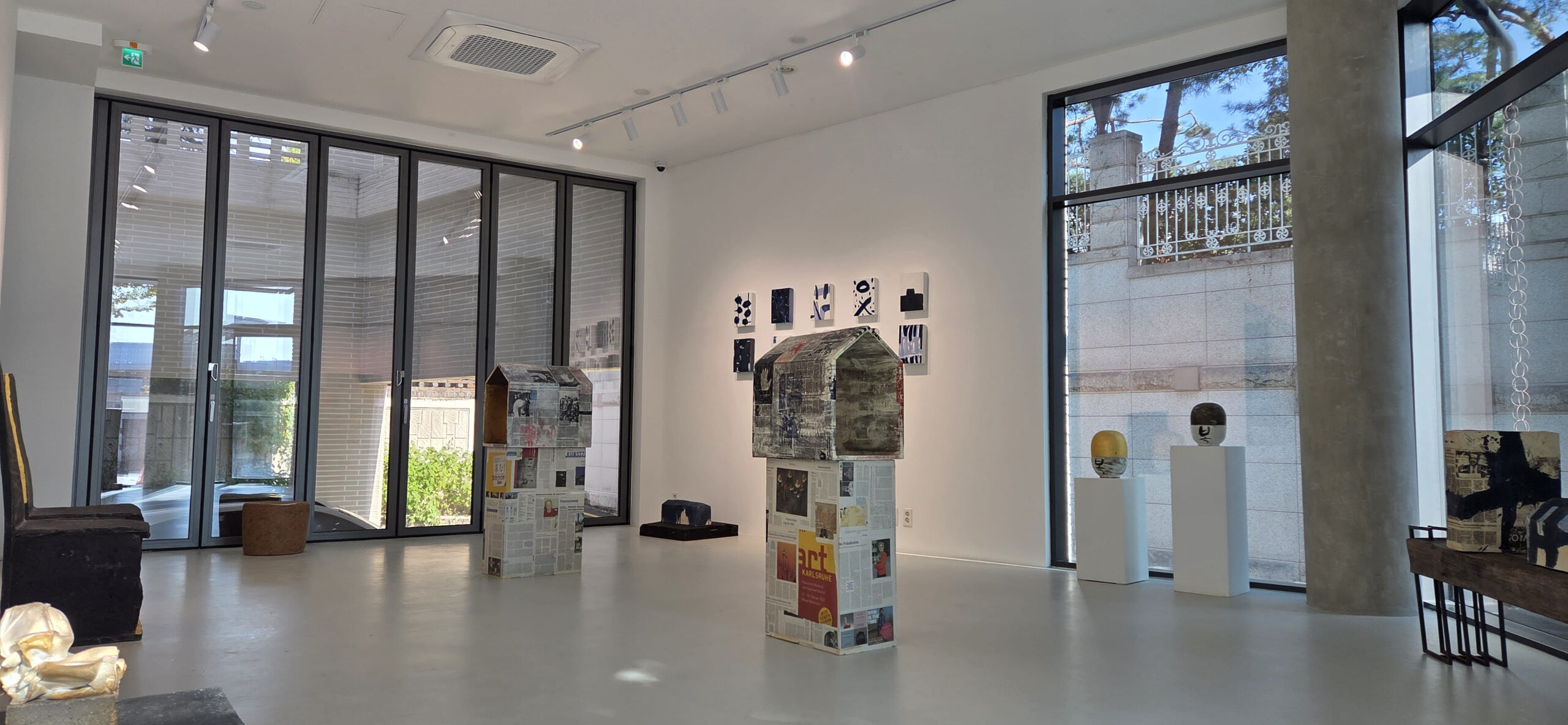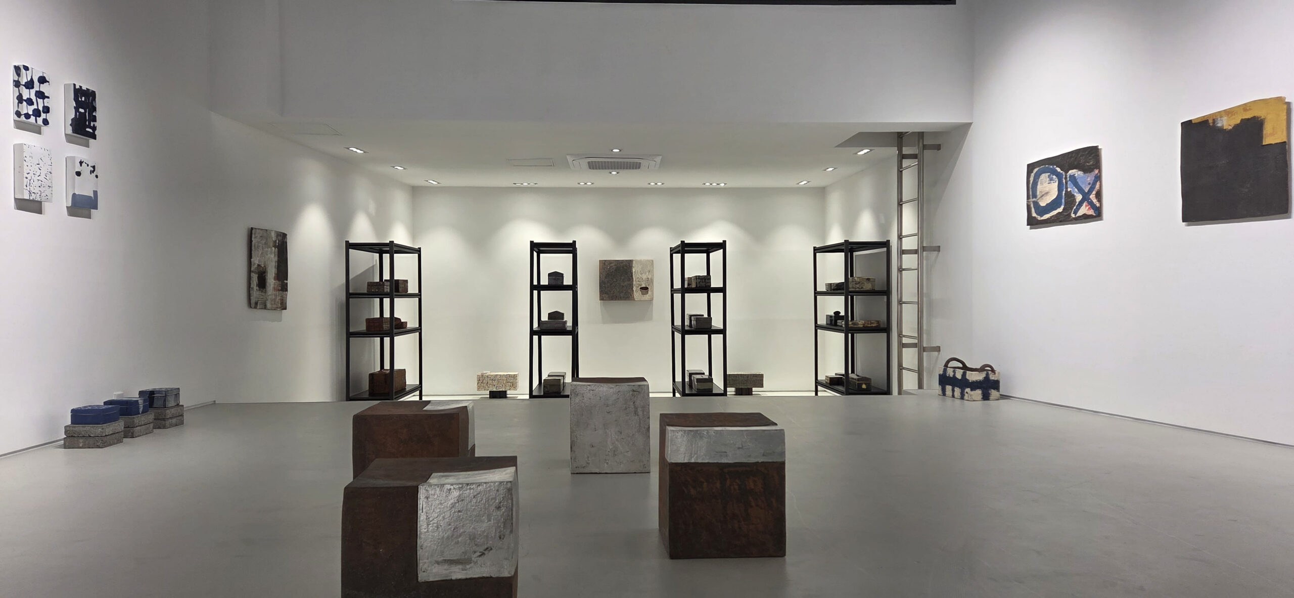 This solo exhibition, 《No Reason》, investigates the presence of objects and the surrounding absence through cubic and rectangular forms that evoke ‘boxes,’ ‘chairs,’ ‘chests,’ and ‘houses.’ Images of a bowl of rice, a rocking horse, a home, or an apple appear on the clay canvases—fragments from the artist’s memory, sometimes left as collaged images, embedded texts, or engraved seals that testify to his inner landscape.